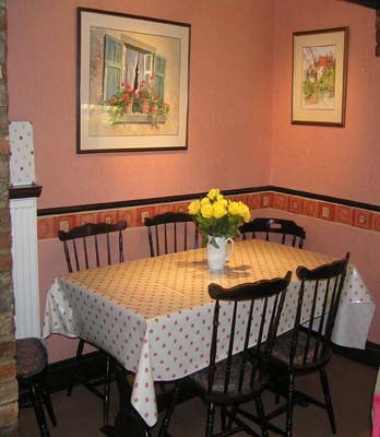 The cosy Dining Area is provided with a large refectory table and six matching chairs, and is tastefully decorated and well-lit. |