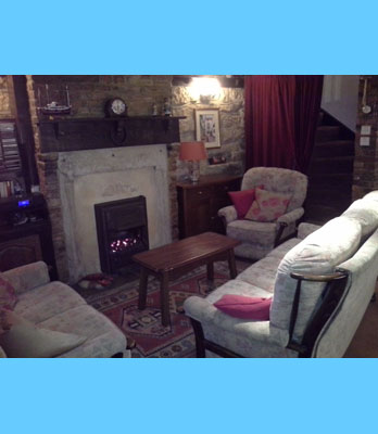 The cosy Lounge area is furnished with a three piece suite comprising a three-seater settee, a two-seater settee and one easy chair. All are arranged around a coal effect gas fire within the fire surround with mantlepiece. A Television with Freesat, and a DVD player, and a sound system with tuner and CD player are provided, along with a selection of DVDs and CDs for the enjoyment of the visitor. Free Wifi is provided through our in-house router. |
