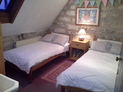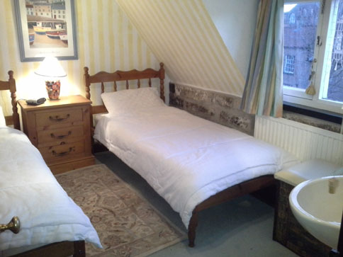 The rear twin is cosy and warm, and benefits from two Velux windows in the roof. All bedrooms have a washbasin, hair dryer and shaver point. |
